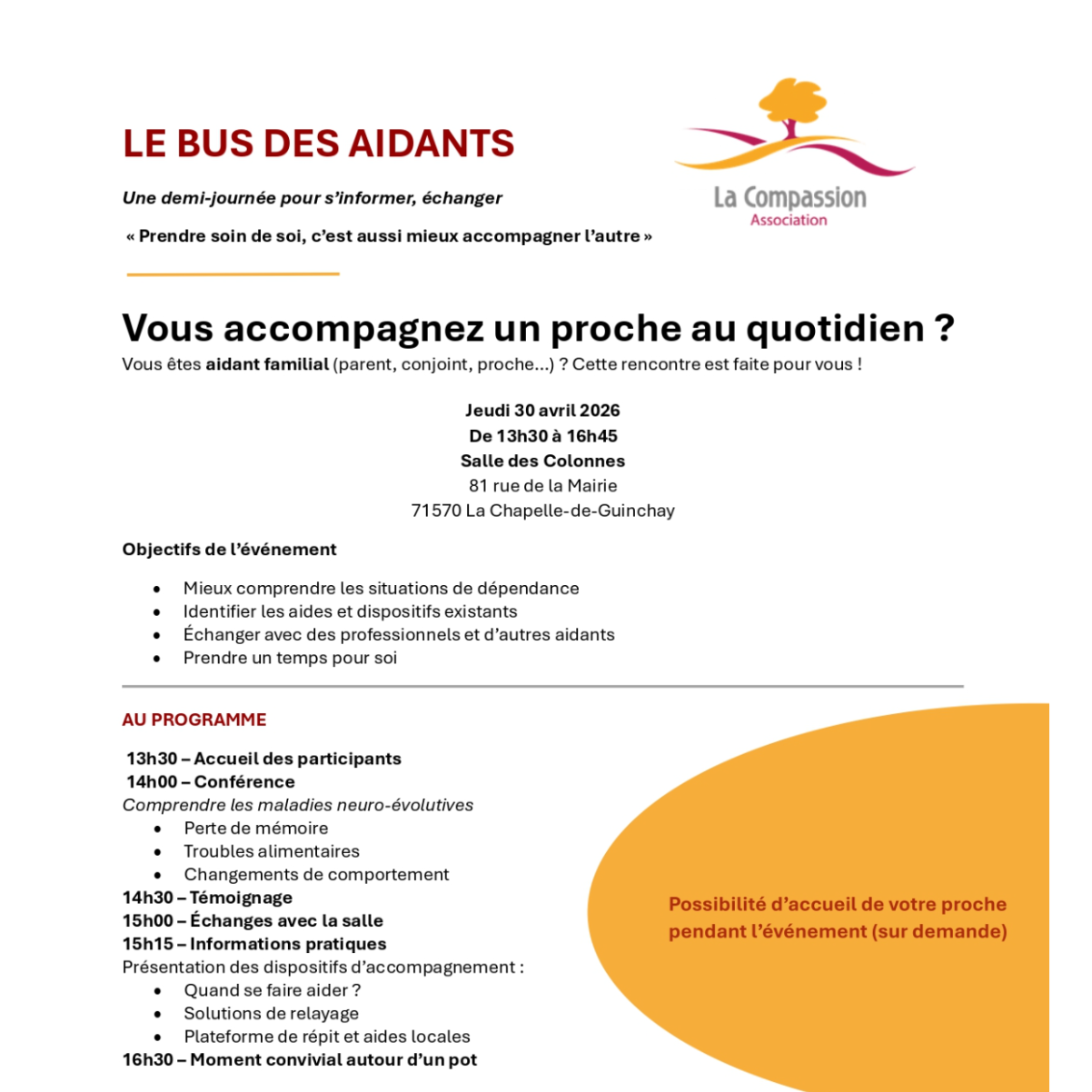 Jeudi 30 avril 2026 De 13h30 à 16h45 Salle des Colonnes 81 rue de la Mairie 71570 La Chapelle-de-Guinchay