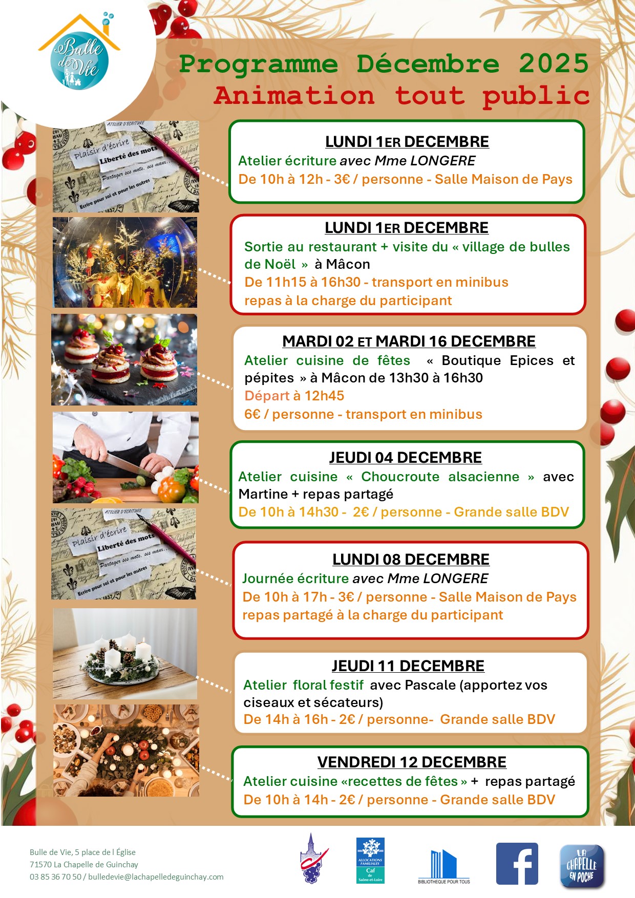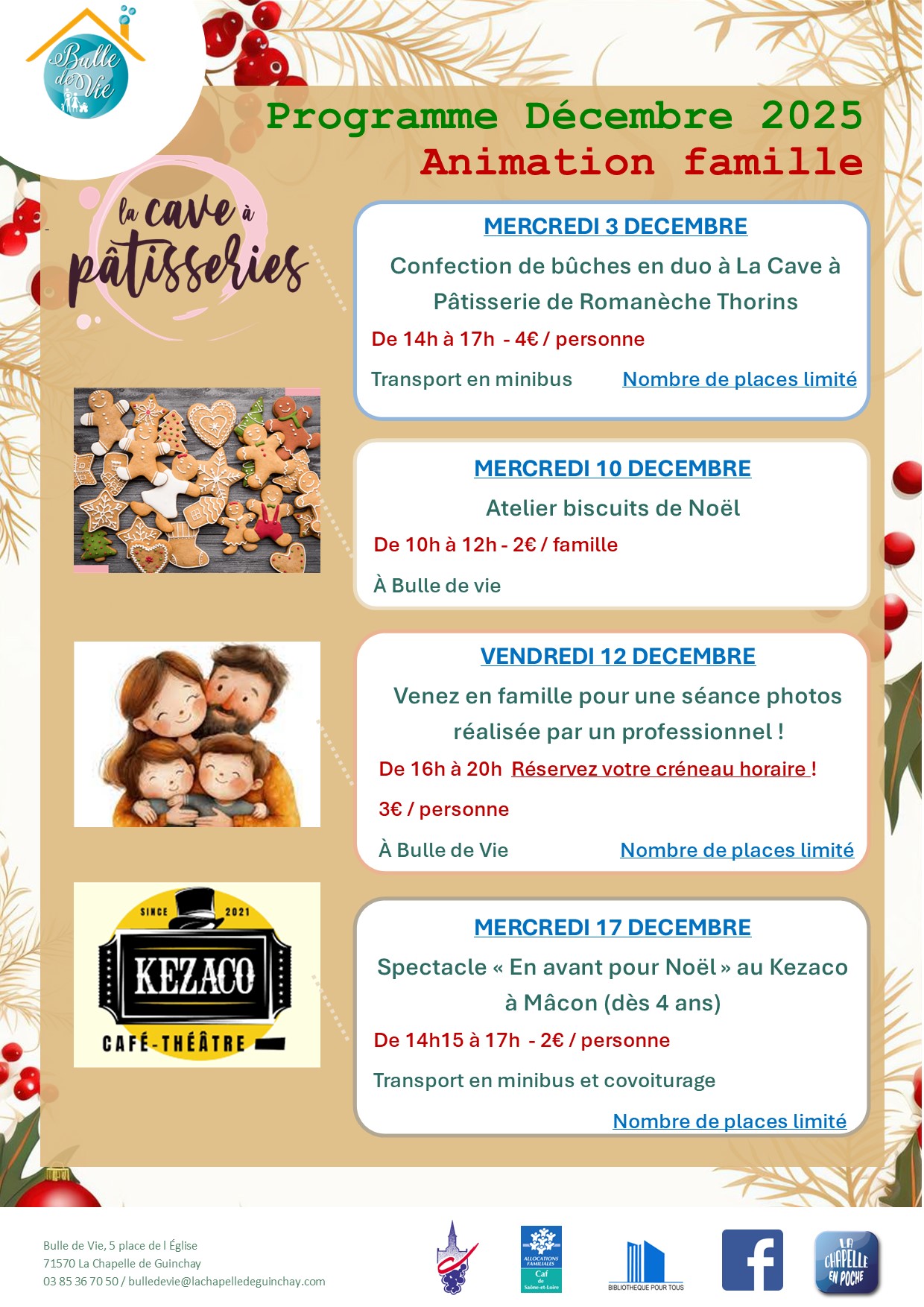 Chaque mois, retrouvez les plannings des animations familles et des activités proposées par Bulle de Vie !